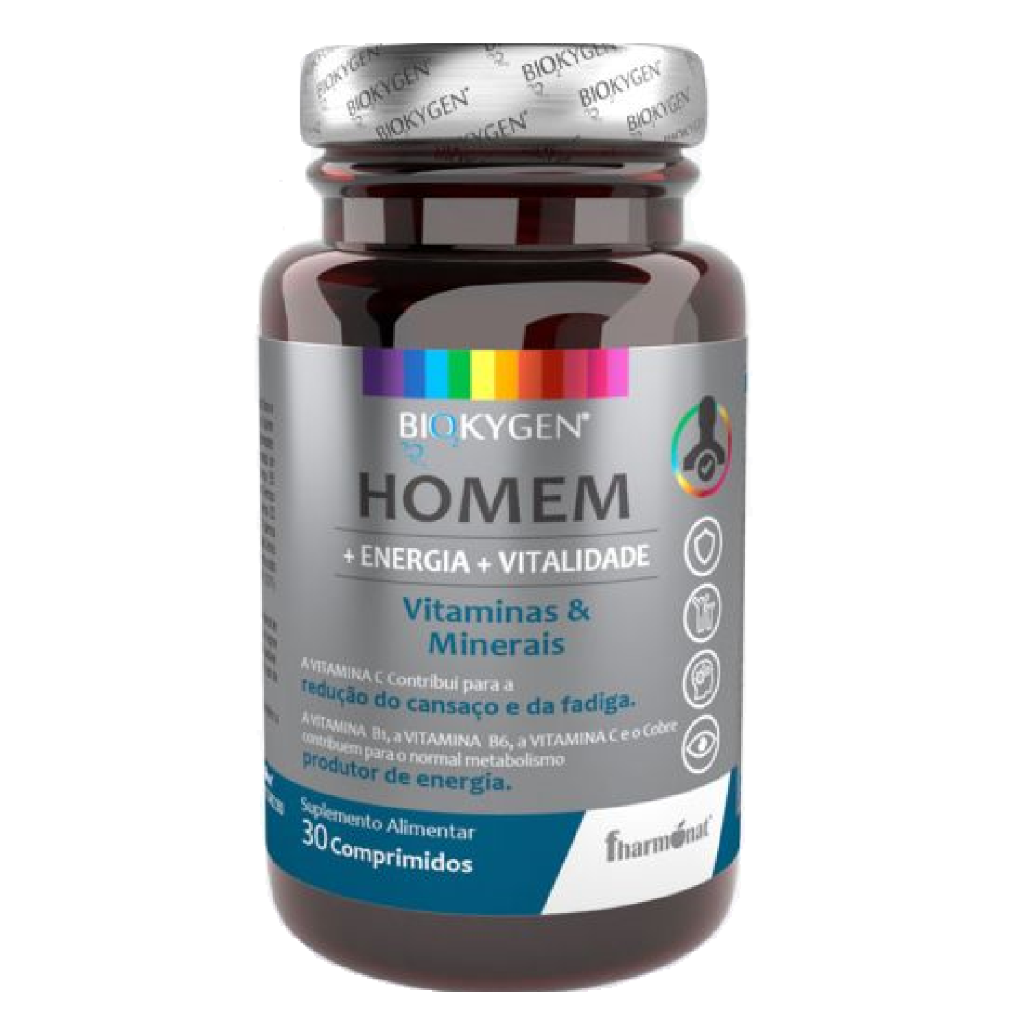 Biokygen Homem da Fharmonat é um multivitamínico completo, que fornece ao homem uma fórmula equilibrada de vitaminas e minerais.